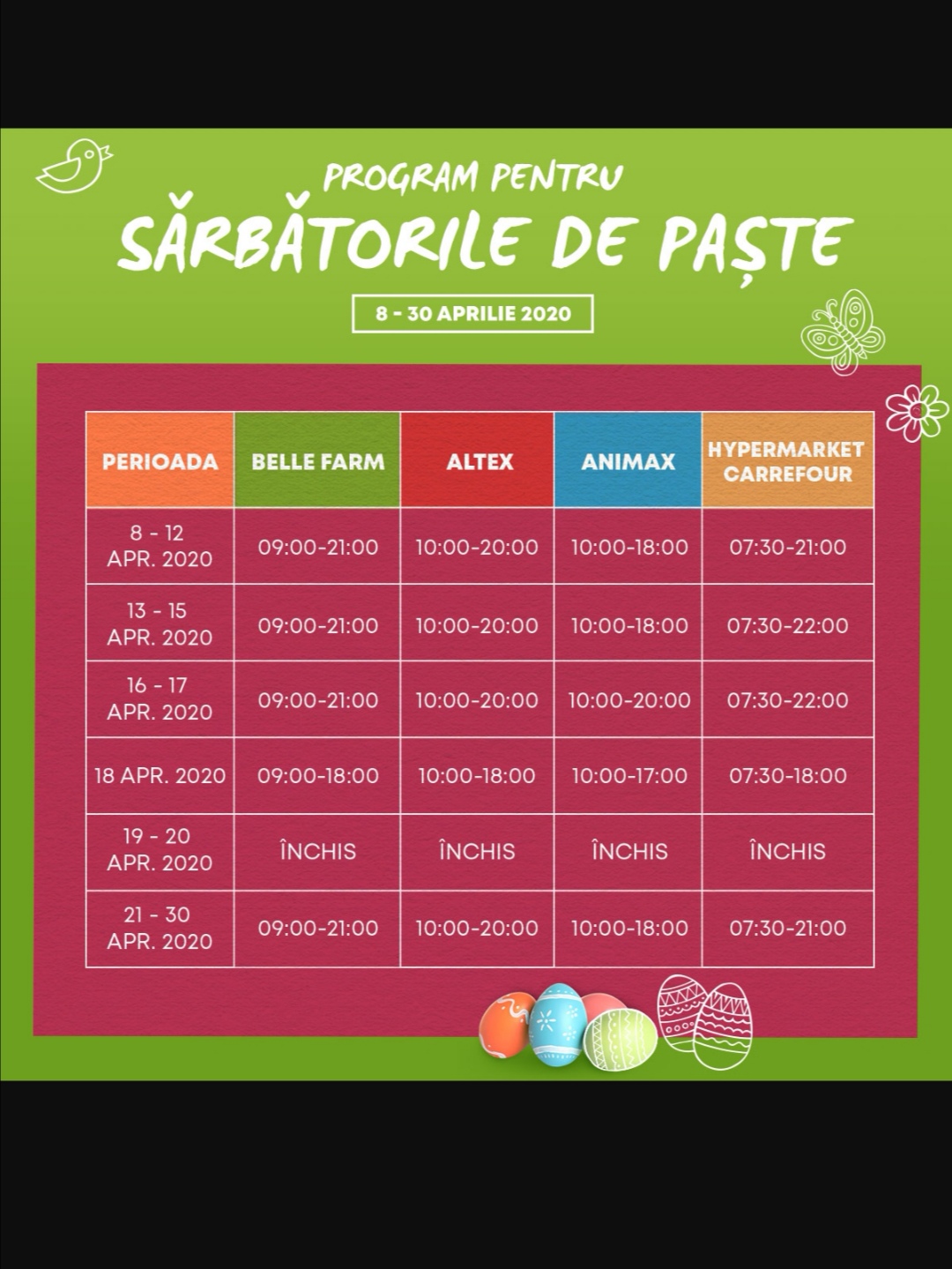 Vezi programul de Paște la mall-ul din Târgu Jiu