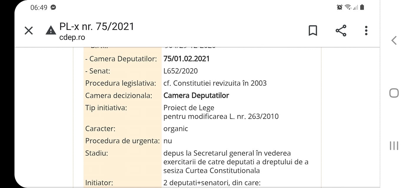 – PLx75/2021; (Legea pentru reducerea cu 13 ani a vârstei de pensionare)