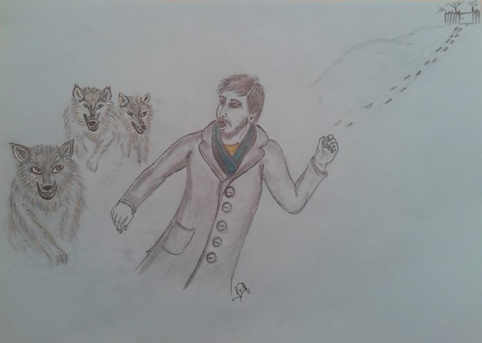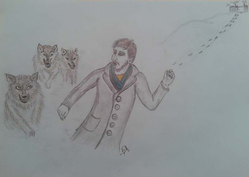 Își luă paltonul din cui și o porni fără țintă prin grădină… doar el cu gândurile și amintirile… cu întrebările pe care și le punea acum, deși ar fi trebuit să și le pună cu mult timp în urmă! Deschise automat și cufundat în gânduri poarta și ieși în plin câmp… Aerul era rece și îi făcea bine… îl ajuta să-și limpezească gândurile, să pună cap la cap tot ceea ce se întâmplase și să înțeleagă totul… Zăpada începea să-i scârțâie sub bocanci… Zgomotul pe care îl făcea îl trezi: înaintase mult în câmp! Ei bine, acum avea să se întoarcă, tocmai la timp pentru masă! Îi era foame, o foame accentuată de mersul încordat și de stres… Trebuia să îl împace și pe Andrei. Încă nu știa ce îi va spune… Andrei era tot ceea ce mai rămăsese din familia sa. Cu coada ochiului văzu petele negre. La început, crezu că erau pietre… dar se mișcau… Observă, cu îngrijorare crescândă, că se grupaseră și înaintau spre el… Înțelese, cu spaimă: erau lupi! Se întoarse brusc, și începu să urce pieptiș dealul… ,,Repede!” Erau din ce în ce mai aproape… I se părea că nu înainta deloc… Broboane de sudoare i se prelingeau pe ceafă și față… Sub palton era ud, de parcă făcuse duș… ,,…nu va ajunge la timp” i se înșurubă în creier… Le simțea ochii sfredelindu-l în spate, în timp ce respirația i se făcea tot mai greoaie… Încă un pas și… … Andrei deschisese poarta dinspre câmp a grădinii… Larg… Nu era singur! Era însoțit de șase câini. Puternici! ,,Tata, venim!” se auzi strigătul, și până domnul Eusebiu să poată articula ceva, băiețandrul împreună cu câinii se puseră în mișcare… Domnul Eusebiu se văzu prins între cele două tabere… Câinii care-l însoțiseră pe Andrei îl înconjurară… și așteptau, mârâind, cu ochii holbați…Andrei ajunse lângă el. ,,De ce ai făcut-o? Ești în pericol, Andrei!” bâigui… ,,Și ce vrei să fac tata, să te las lupilor? Ori noi, ori…” răspunse Andrei, cu ochi scăpărători. Băiatul lui! Devenea bărbat! Gândurile i se sparseră în mii de bucăți… Lupii atacară… Câinii răspunseră: urlete, lătrături furioase, mușcături, schelălăieli… Unuia dintre lupi îi fu sfâșiată o labă. Haita se aruncă asupra lui… Suficient timp pentru ca oamenii și câini să se retragă și să închidă poartă către haos….