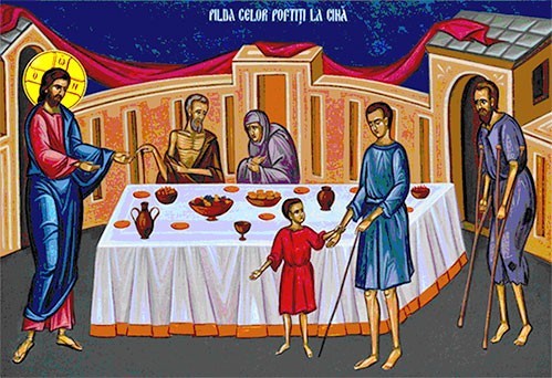 Şi întorcându-se, sluga a spus stăpânului său acestea. Atunci, mâniindu-se, stăpânul casei a zis: Ieşi îndată în pieţele şi uliţele cetăţii, şi pe săraci, şi pe neputincioşi, şi pe orbi, şi pe şchiopi adu-i aici! Şi a zis sluga: Doamne, s-a făcut precum ai poruncit şi tot mai este loc. Şi a zis stăpânul către slugă: Ieşi la drumuri şi la garduri şi sileşte să intre, ca să mi s e umple casa! Căci zic vouă: Nici unul din bărbaţii aceia care au fost chemaţi nu va gusta din cina mea!» (Ev. Luca XIV, 16-24), de unde putem înţelege pe deplin că Stăpânul casei este Însuşi Dumnezeu, Care ne cheamă cu bunătate ca să stăm în prezenţa Lui şi să gustăm din darurile Lui, la acest ospăţ al credinţei, al Evangheliei şi al harului la care ne pofteşte în Sfânta Biserică. Refuzându-L, asemeni celor din Pericopa Evanghelică, ne lipsim de adevărata împlinire, însă, gustând din acesta, vom avea bucuria comuniunii cu Hristos, vom pregusta o fărâmă din fericirea Raiului! De fapt, Stăpânul care ne pofteşte la Cină este Dumnezeu, Tatăl ceresc, iar, marele ospăţ la care suntem chemaţi semnifică bucuria şi fericirea cosmică a Împărăţiei Sale cereşti, pe când întristarea şi durerea sunt străine vieţii Dumnezeieşti, pentru că sunt rodul intrării păcatului în lume. Nici o bucurie pământească nu echivalează cu cea pe care o are moştenitorul Împărăţiei cerurilor, iar, fericirea este însuşi destinul omului pe care Dumnezeu l-a creat ca să fie fericit veşnic, nu numai temporar, pentru că Bunul Dumnezeu ne ajută să înţelegem că Hristos S-a dat pe Sine în lumea noastră, ca să ne facem părtaşi trupului Său, iar, prin însăşi răstignirea Sa, noi suntem poftiţi la cină!