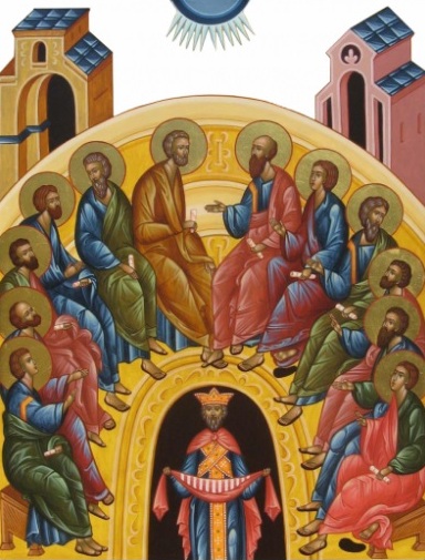 Aşadar, în urmă cu 10 zile, când am prăznuit «Înălţarea» la cer a Mântuitorului, în Evanghelia citită la Sfânta Liturghie, ni s-a relatat că înainte de «Înălţare» Mântuitorul le-a făgăduit sfinţilor Săi ucenici şi apostoli, că le va trimite un «povăţuitor», adică, pe Duhul Sfânt, cea de-a treia Persoană a Sfintei Treimi, care îi va îndrepta spre tot adevărul în activitatea lor misionară de propovăduire a Evangheliei în toată lumea. Astfel, întăriţi sufleteşte cu această povăţuire a Domnului Iisus Hristos, apostolii, ucenicii şi Maica Domnului s-au întors în Ierusalim de pe Muntele Măslinilor, unde Domnul S-a înălţat la cer, şi acolo, într-o cameră încuiată stăteau ascunşi de frica iudeilor, rugându-se lui Dumnezeu şi aşteptând împlinirea acestei făgăduinţe. Ca urmare, în Duminica a 8-a după Paşti, când se împlinesc 10 zile de la Înălţarea la Cer, şi 50 de zile după Învierea Sa din morţi, Mângâietorul vine pe pământ, apostolii lucrează, lumea se înnoieşte, Biserica se întemeiază, toate se schimbă, toate se îmbracă în lumina lui Hristos, Care le luminează tuturor Calea, Lumina şi Adevărul! Iar, Duhul Sfânt este al treilea Ipostas, a treia Persoană a Preasfintei Treimi, care purcede din Tatăl, Se odihneşte în Fiul şi prin El ni se face cunoscut şi nouă, oamenilor. Duhul Sfânt este puterea lui Dumnezeu, Care este pretutindeni şi pe toate le împlineşte, văpaia care aprinde inimile, Lumina care luminează ochii, Dulceaţa care mângâie auzul, Înţelepciunea care umple toată mintea omului! Duhul Sfânt este Puterea care ne întăreşte, Tăria care ne îmbărbătează, Pâinea care ne hrăneşte sufletele, Izvorul care ne adapă, Făclia care ne călăuzeşte, Veşmântul care ne acoperă, Apa cea vie, Comoara cea înveşnicită în Mărgăritarul cel de taină, Izvorul care dă viaţă tuturor, Vântul care adie în lume, Norul care rourează, Căldura care face să crească toate, dar, peste toate acestea, Duhul Sfânt este Sufletul Bisericii, nădejdea mântuirii noastre, adâncul înţelepciunii, bărbăţia apostolilor, curajul mucenicilor, bucuria cuvioşilor, mângâierea mamelor, tăria soţilor, veselia pruncilor, frumuseţea fecioarelor, deci, Dumnezeu Care ne arată că Duhul Sfânt sfinţeşte cerul şi pământul, pentru că Fiul S-a făcut Mucenic pentru om, iar Duhul Sfânt ne face pe noi mucenici pentru Hristos!