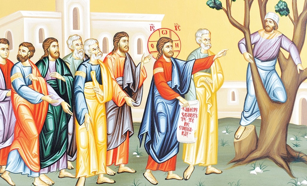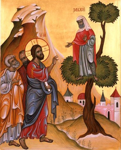 În Duminica a 32-a după Rusalii (a lui Zaheu); Ap. 1 Timotei 4, 9-15; Ev. Luca 19, 1-10; glas 8, voscr.11, la Sfânta şi Dumnezeiasca Liturghie, textul Sfintei Evanghelii ne înfăţişează, spre duhovnicească zidire, o minune săvârşită de căre Mântuitorul Iisus Hristos, care se petrece în oraşul Ierihon, iar, Domnul era în trecere prin această aşezare evreiască, înconjurat ca de obicei de mulţime mare de popor, dornică să vadă cu ochii proprii lucrurile peste fire ce le săvârşea Iisus, dar, mai ales doritoare ca să-I asculte învăţăturile dumnezeieşti! Astfel, în Ierihon trăia un om cu numele Zaheu, mic de statură, însă, pe cât era de bogat, pe atât era de păcătos, fiind mai marele vameşilor, adică, era căpetenia acelora care încasau dările pe care evreii erau datori a le plăti stăpânirii romane, care nu cu mult înainte, îşi întinsese puterea şi asupra pământului sfânt al făgăduinţei. Deşi avea o ocupaţie dintre cele mai urâte de popor, fiind direct în slujba puterii înrobitoare şi dijmuind mai ales şi cu mai multă asprime pe cei săraci, pe cei mici şi fără apărare, adică, pe orfani şi pe văduve, şi aceasta facând-o nu atât în folosul vistieriei statului, cât mai ales în al pungii proprii, ceea ce justifică bogăţia mare a lui, ca şi păcătoşenia sa fără margini, fiind fruntaş între fruntaşii oraşului, deoarece era foarte bogat. Încă de pe atunci, ca şi astăzi, se ştia că respectul, consideraţia de care te bucurai, poziţia socială pe care o aveai, erau în strânsă legătură şi proporţie nu cu cinstea şi omenia vieţii omului, nu cu profilul moral pe care îl avea, nu cu virtutea pe care o practica şi nici chiar cu ştiinţa şi priceperea de care dădea dovadă cineva, ci cu averea sau cu starea materială pe care se lăfăia în bunăstare! Desigur, Zaheu va fi auzit despre Mântuitorul Hristos, al cărui nume era rostit cu atâta veneraţie şi devotament de mulţime şi căruia îi cântau osanale toţi cei mântuiţi din tot felul de neputinţe, şi chiar dacă Se înfăţişa ca un om adevărat, trăia ca un înger, vorbea ca un heruvim şi făcea semne şi minuni mai mari şi mai multe decât orice profet al legii celei vechi, iar, în acest fel, Dumnezeu ne arată că nemărginita milostivire a lui Iisus a pătruns atât de puternic în sufletul lui Zaheu, încât a răscolit şi acel dram de bunătate care îi mai rămăsese!