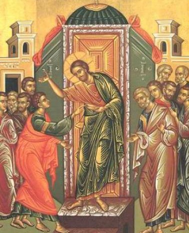 În Duminica a 2-a după Paşti (a Sf. Apostol Toma); Ap. Fapte 5, 12-20; Ev. Ioan 20, 19-31; glas 1, voscr.1, textul Evangheliei care se citeşte la Sfânta Liturghie vine ca să ne întărească în credinţă pe cei care suntem uimiţi de întâlnirea cu Hristos Cel Înviat, să ne dea sprijin pentru a înţelege Taina Învierii Sale, iar, încredinţarea Apostolului Toma, ne dă un răspuns de netăgăduit şi incontestabil, tocmai la această perspectivă a Învierii lui Hristos, dar şi asupra dumnezeirii Sale! Sfântul Apostol Toma a făcut proba palpabilă a Învierii Domnului, în locul nostru, încât nu ne rămâne decât să credem în dumnezeirea lui Iisus Hristos, aşa cum o face acest Apostol, fără să mai pretindem a-L vedea sau a-L pipăi, căci, printr-o astfel de credinţă, putem fi fericiţi şi împliniţi, aici pe pământ şi în veacul viitor! De bună seamă, credința asociată cu îndoiala, asemenea celei a lui Toma, nu înseamnă neapărat necredință, deoarece, puterea de a crede nu e una statică, ci una fundamental dinamică, într-o evoluție a înțelegerii conținutului credinței. În decursul vieții, noi alternăm credința cu necredința şi credem că Hristos a Înviat, dar ne comportăm ca și când am fi slabi în simţire, atunci când îi rănim pe semenii noștri. Credem cu putere că Hristos e Dumnezeu, dar cu toate acestea, nesocotim una sau alta dintre porunci, găsind scuze ca să le încălcăm, spre a ne atinge interesele egoiste şi meschine. Prezentarea întâlnirii Sfântului Apostol Toma cu Iisus cel Înviat presupune şi o reflecţie despre relaţia dintre investigaţiile ştiinţifice şi istorice ale adevărurilor religioase şi credinţa noastră dreptmăritoare, mai ales că astfel de investigaţii sunt considerate de primă im¬portanţă în lumea de azi! Dacă sunt ele irelevante pentru credinţă, sau poate păcătoase, chiar exemplul Apostolului Toma ne arată că nu trebuie să ne pripim, deoarece neîncrederea lui Toma se baza pe chestiuni de maximă importanţă pentru el, astfel încât să fie îndepărtate fără prea multă preocupare ca de nerezolvat, doar pentru că Apostolul Toma dorea să ştie adevărul! În acel moment, Domnul i-a dat lui Toma întreaga dovadă empirică pe care o ceruse, deoarece, Dumnezeu ne arată totdeauna pe Fiul Cel Înviat, care este Hristos Domnul şi nu ne lasă ca să ne rătăcim în drumul nostru spre limanul cel neînviforat al Împărăţiei veşnice!