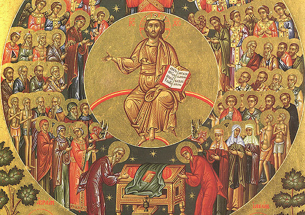 Se pare că, tocmai arborii care stau pe înălţimile munţilor, izbiţi de multe şi puternice vânturi, răbdând vremile cele rele, suportând furtunile cele mai silnice şi suferind mult de zăpadă, aceştia sunt mai tari decât fierul şi stânca! De asemenea, şi acele trupuri omeneşti care sunt crescute în multe și felurite îndestulări, care sunt împodobite cu haine moi, care necontenit întrebuinţează băi şi tot felul de tratamente şi se îndulcesc cu bucate bune, acestea sunt cu totul incapabile de toate ostenelile şi greutăţile pe care trebuie să le rabde cineva pentru cucernicie şi smerenie, iar, persoanele respective se fac vinovate de foarte mare pedeapsă. Cu adevărat, Biserica dreptmăritoare îi cultivă pentru viața veșnică doar pe cei ce se supun, iar cei nesupuși se uscă la fel ca vreascurile și spinii! Cutezanţa de a sta împotriva mincinoasei demagogii a învăţaţilor acestei lumi secularizate, împotriva trecătoarei bogăţii a bogaţilor acestei lumi, împotriva puterii întunecate a puternicilor acestei lumi dezbinate, ar fi avut-o oare acei pescari de rând, dacă nu i-ar fi hrănit Dumnezeu cu înţelepciunea Sa, dacă nu i-ar fi întărit Dumnezeu cu puterea Sa, dacă nu i-ar fi înarmat Dumnezeu cu armele Sale? Sfinţii Lui Dumnezeu, nu ar fi avut îndrăzneala de-a îndura chinuri neînchipuite, umilinţe negrăite, bătăi, naufragii, lanţuri, închisoare, batjocură, foame, pietre, vânturare de la un capăt la altul al lumii, aruncare la fiare sălbatice, biciuire, răstignire fără puterea Lui Dumnezeu pe Care l-au urmat cu devotament şi sacrificiu! Fără îndoială că aceşti sfinţi trebuie să fi primit un ajutor nebiruit, o hrană neobişnuită, o armă nevăzută, cu propovăduirea lui Hristos Cel Înviat, a lui Dumnezeu care S-a descoperit oamenilor în trup şi apoi iarăşi S-a Înălţat în cereasca-I împărăţie, pentru că sfinţii au semănat sămânţa unei credinţe noi, şi atunci s-a aprins lumea de focul seminţei semănate de ei, de focul cuvintelor rostite de ei, de focul urmelor lăsate de ei! Să cuprindem și noi, asemenea sfinților Bisericii pe care-i prăznuim în Duminica întâi după Rusalii, raiul cel ceresc, cu privirea gândului nostru și să împrumutăm de la ei înţeleptele lor însușiri, ca să ajungem mai apoi să viețuim împreună cu ei, cu ale căror rugăciuni să ne și învrednicească, iar, noi să înţelegem în cele din urmă că Dumnezeu S-a descoperit oamenilor în trup şi prin toţi sfinţii Săi, apoi S-a Înălţat în cereasca-I Împărăţie şi a semănat sămânţa unei credinţe noi şi a unei vieţi noi!
