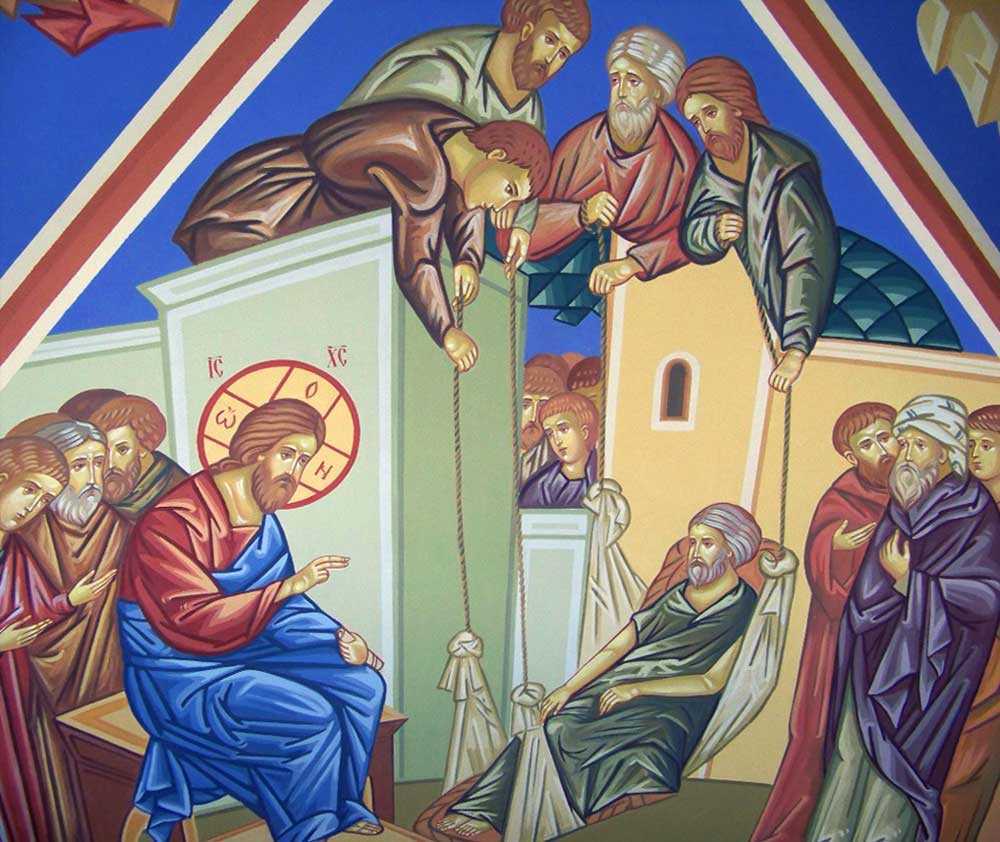 Ca să dezvoltăm puţin conţinutul parabolei, să spunem că cei patru prieteni l-au adus pe slăbănog, care zăcea în pat, iar, Mântuitorul Hristos, Care este şi Doctorul doctorilor, văzând credinţa lor, a zis slăbănogului: ,,Îndrăzneşte, fiule; ţi se iartă păcatele tale”, însă, unii dintre cărturari au gândit în sinea lor: «Acesta săvârşeşte blasfemie», dar, Iisus, ştiindu-le gândurile lor, le-a zis: ,,Pentru ce cugetaţi cele rele în inimile voastre? Căci ce este mai lesne a zice: ţi se iartă păcatele tale, sau a zice: scoală-te şi umblă? Ca să ştiţi însă că putere are Fiul Omului pe pământ a ierta păcatele, şi atunci i-a zis slăbănogului: ,,Scoală-te, ia-ţi patul tău şi te du la casa ta”! Şi, sculându-se el, şi-a luat patul şi s-a dus la casa sa. Iar mulţimile, văzând acestea, se minunau şi-L slăveau pe Dumnezeu, Care a dat o putere ca aceasta oamenilor”.Matei (9,1-8). Prin urmare, textul Evangheliei acestei duminici vrea să ne spune că boala slăbănogului a fost o boală a trupului, dar, ea ascundea o boală a sufletului, iar, boala trupului era semnul văzut al bolii sufletului său. Deci, Evanghelia vindecării slăbănogului din Capernaum ne prezintă multe şi mari adevăruri, dar şi învăţături deosebit de importante pentru a înţelege, atât sensul suferinţei, cât şi modul în care ne putem vindeca de boala trupului care îl cheamă pe om la vindecarea sufletului de boala păcatului! Să luăm aminte că întâlnirea cu Iisus ne aduce iertarea păcatelor, pentru că păcatul este rădăcina tuturor relelor din lume, de aceea, Iisus iartă mai întâi păcatele şi abia apoi îl vindecă pe slăbănog sau paralitic! Noi, nu ştim care erau păcatele paraliticului, dar este necesar să ştim care sunt păcatele noastre: nemilostivirea, goana necontrolată după avere, ambiţia oarbă, căutarea profitului cu orice preţ, goana după cele trecătoare, narcisismul, dorinţa de a-i domina pe alţii, într-un cuvânt: egoismul.Întâlnirea noastră cu Iisus ne vindecă la fel ca şi pe paralitic, ne plasează într-o existenţă nouă bazată pe iubire, pentru ca noi să înţelegem că Dumnezeu ne ajută ca să fim înţelepţi şi să nu rămânem afundaţi cu mintea în suferinţă, deci, să nu ne lăsăm inima paralizată de frică şi de spaima hipnotică în faţa morţii!