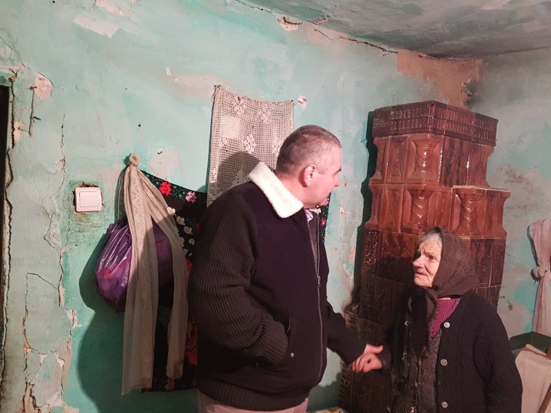 Cosmin Morega i-a făcut focul bătrânei în sobă, aceiași pe care a reparat-o luna trecută. ,,Mă gândesc să găsim o posibilitate să o transferăm și pe ea și alte persoane la centrul social din Motru.
