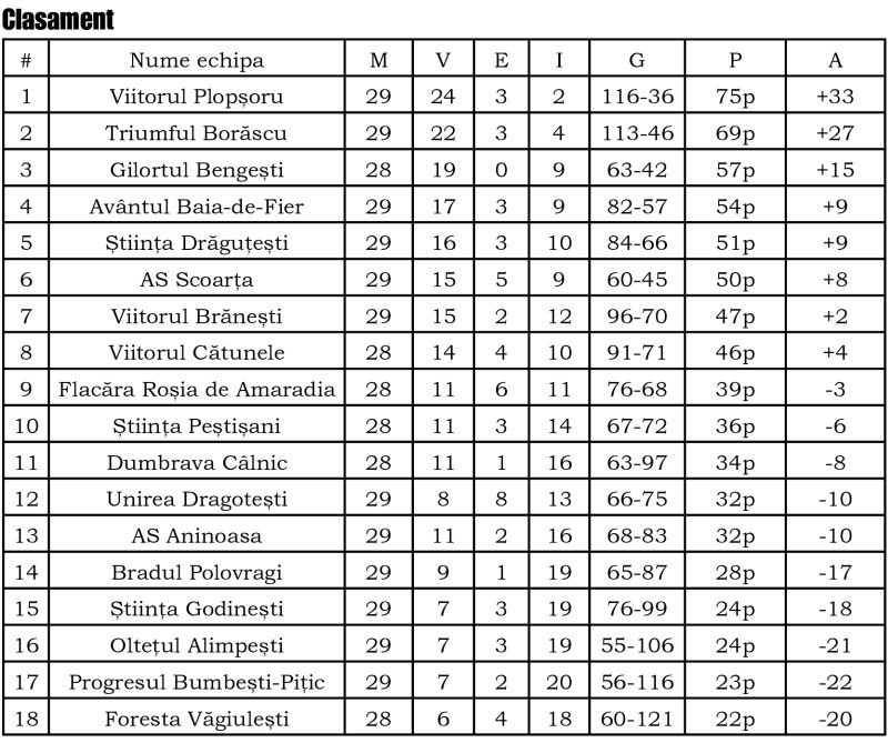 Gilortul Târgu Cărbunești 8 – 0 Viitorul Negomir