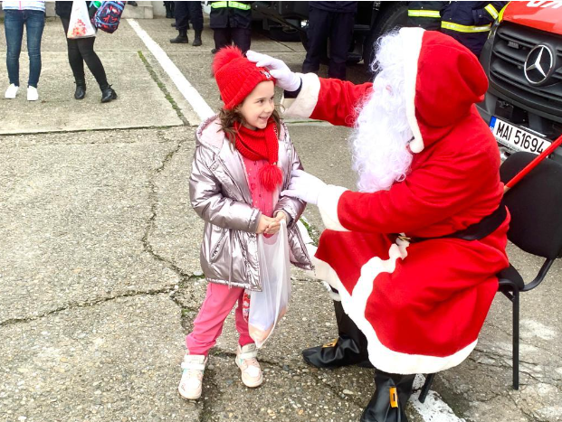 ISU Gorj a primit astăzi o trupă de mici colindători. Copiii s-au întâlnit apoi chiar cu Moș Crăciun, aflat acolo cu sacul plin, după cum povestesc pompierii.