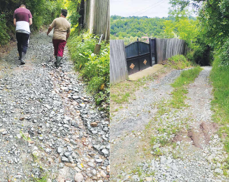 Bărbații din cătun și-au rupt mașinile în gropile căscate în lungul drum spre casă și au mulțumit fiului bătrânei, antreprenor în Motru care, din propriul buzunar, a adus piatră pe drumul care ar fi trebuit reabilitat din bani publici.
