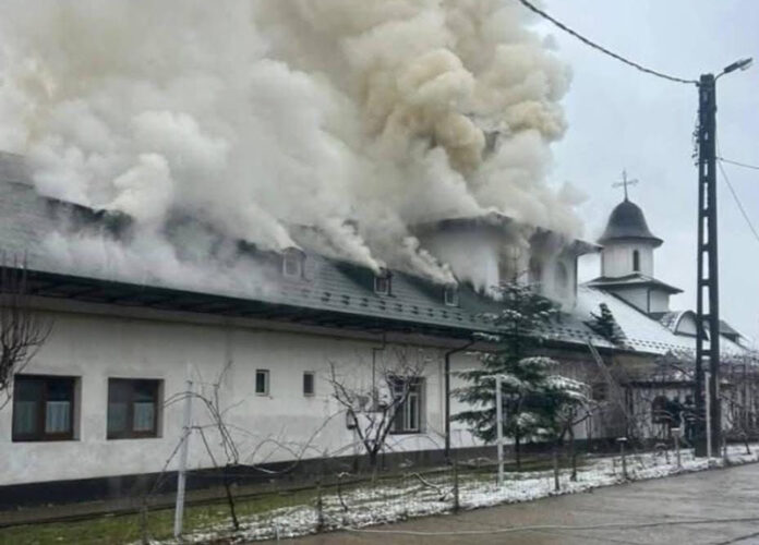 Pompierii gorjeni au intervenit, sâmbătă, pentru stingerea unui incendiu izbucnit la Mănăstirea Sfânta Treime, din satul Strâmba-Jiu al orașului Turceni. Potrivit reprezentanților Inspectoratului pentru Situații de Urgență Gorj, flăcările au cuprins acoperișul unei chilii monahale, în timpul unui parastas.