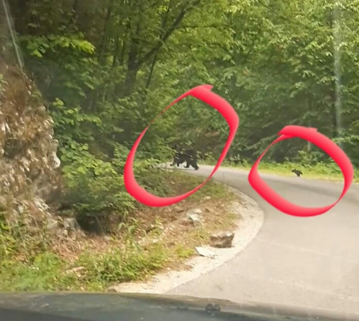 Jandarmii montani din comuna Runcu au avut parte, astăzi, de o întâlnire neașteptată, în timp ce patrulau pe Valea Susenilor. Pe drum se aflau o ursoaică și doi pui, atrași probabil de hrana lăsată de turiști în zonă. Animalele au fost alungate cu sirenele autospecialei de jandarmi.