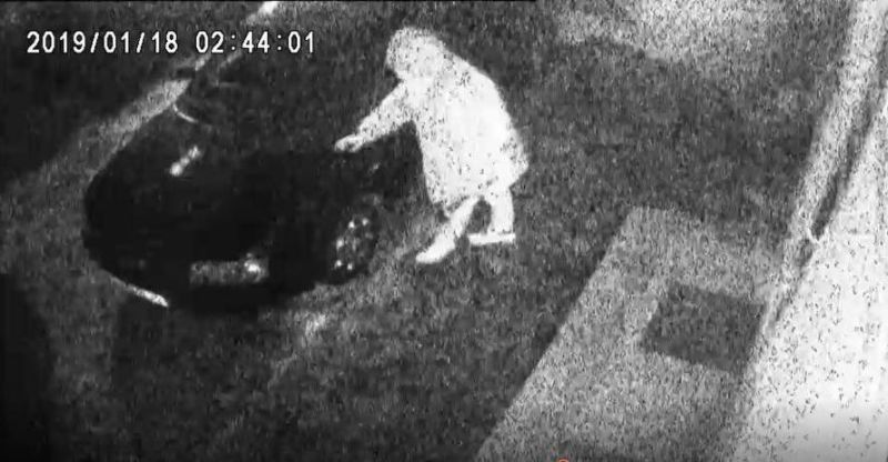 Pe imagini se vede un individ, care sare cu picioarele pe una dintre mașini, dă cu piciorul în geamuri, rupe un ștergător de la una dintre mașini și o lovește cu acesta pe alta, rupe oglinzile, încearcă să deschidă ușa, sare în aceasta cu picioarele, dar cade pe spate și încearcă să desfacă capota, dar fără succes.