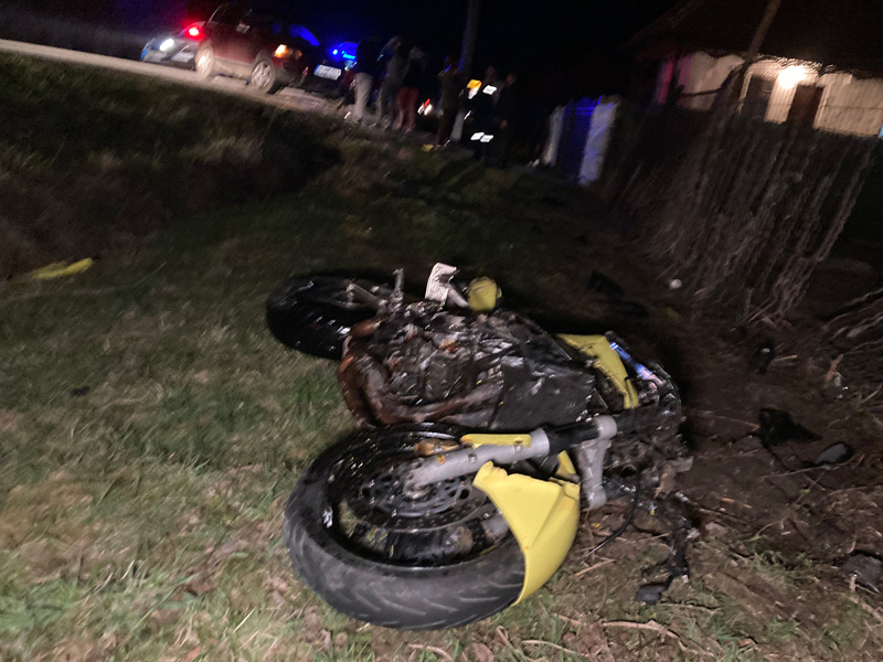 „Eu am vrut să virez spre casă, să fac stânga, nu am văzut nicio mașină în spatele meu, când eram aproape pe bandă a intrat direct în mine. A venit din spate, a venit în depășire, cred că nu m-a văzut, avea viteză. Motocicleta lui s-a dus în gardul de acolo și apoi unde se vede că a căzut”, a spus șoferul autoturismului implicat în evenimentul rutier.
