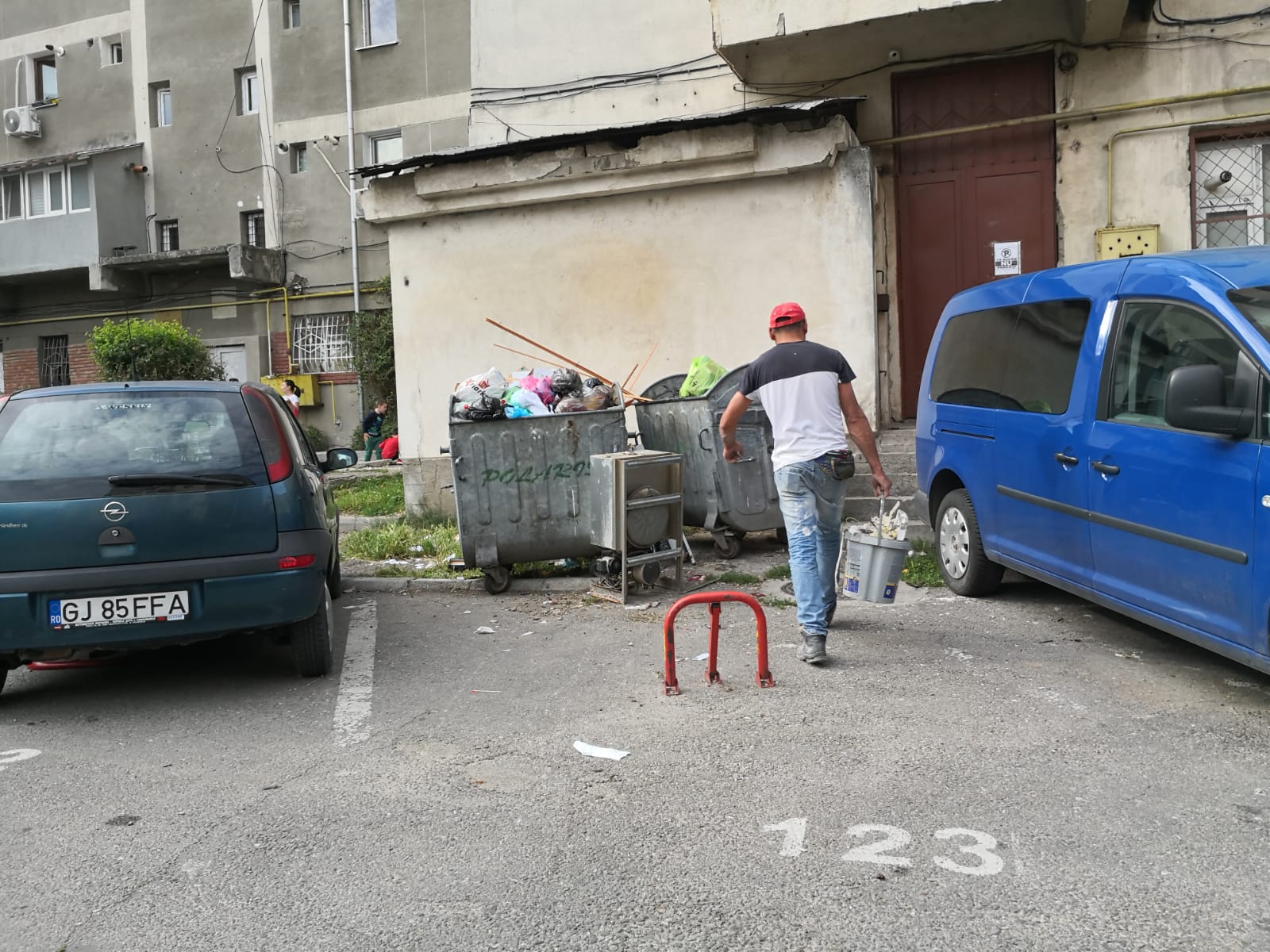 Locatarii s-au revoltat și au cerut mutarea azi a pubelelor pe digul Jiului, pentru a nu mai fi afectate locurile de parcare.