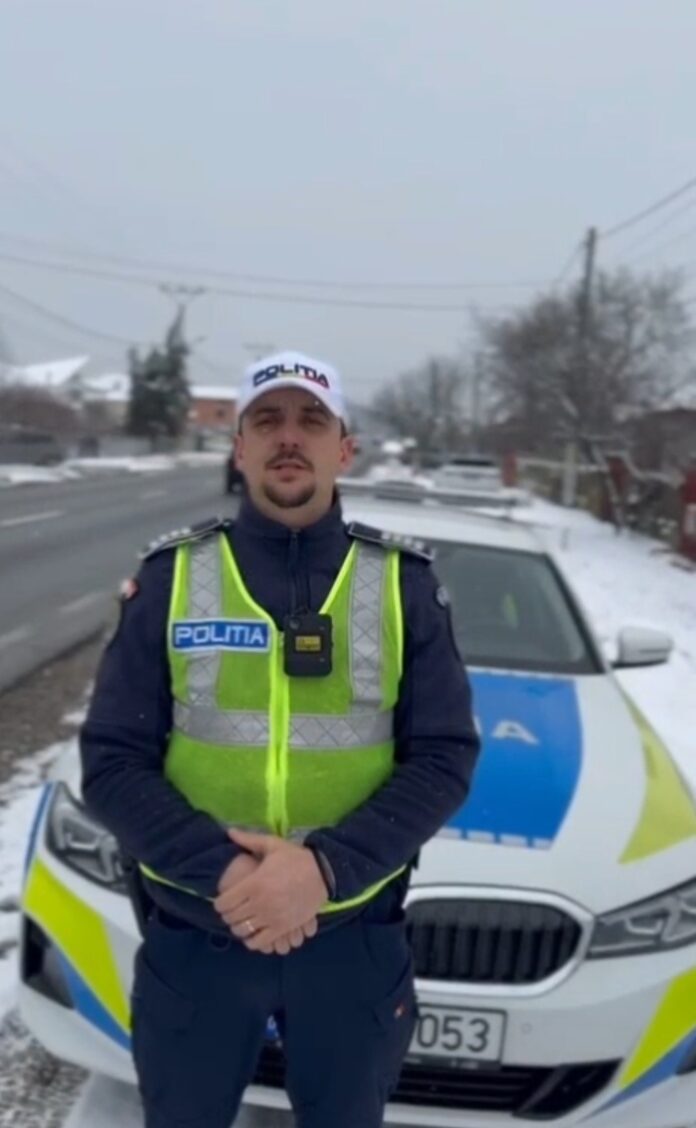 Polițiștii rutieri avertizează că ninsoarea și carosabilul alunecos cresc riscul producerii accidentelor rutiere.