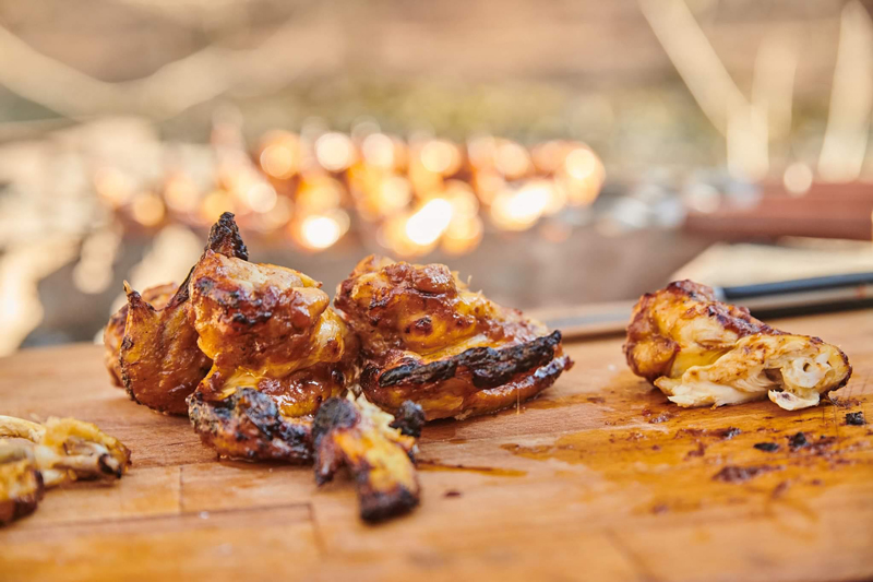 Este important să așteptăm cel puțin 30 minute după ce am adăugat cărbunii peste jar, pentru că, fiind foarte încinși, aripioare se ard. Înfigem aripioarele pe sulițe și le prăjim, învârtind foarte des, ca un fel de rotisor.