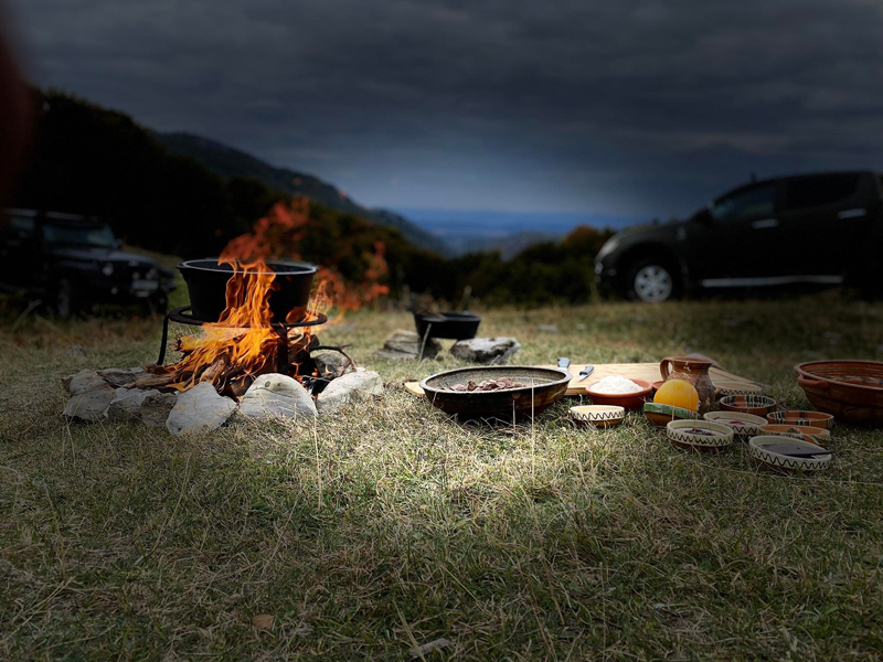 Se stinge cu vin roşu, se lasă vinul să se reducă. Adăugaţi foile de dafin, boabele de ienupăr, carnea prăjită, coaja de portocală, dulceaţa de vişine, cimbru şi apă sau supă de vită şi lăsaţi-o să fiarbă încet.