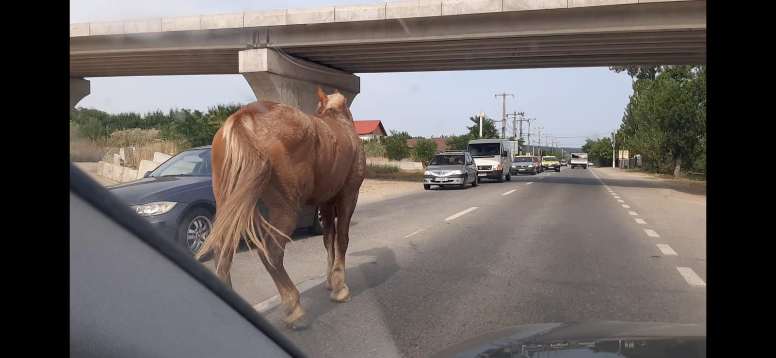 Printre mașini și în plin trafic rutier, la temperaturi de 35 de grade Celsius, trei cai, fără stăpân, au perturbat circulația în zonă Drăgoieni, cartier al municipiului Târgu Jiu. Șoferii au claxonat, au încetinit, s-au mirat, au înjurat dar, unul dintre cai nu a vrut să părăsească linia întreruptă ci s-a încăpățânat să rămână în mijlocul drumului.