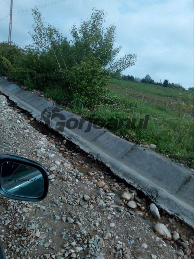 Cum era de așteptat, apa a măturat totul în cale, afectând, atât drumul, cât și rigolele, susțin reclamanții cu câteva fotografii relevante. Unul dintre cetățeni, fost consilier local PNL în comună, este cel mai nemulțumit, spunând că intenționează să reclame situația și la organele de anchetă.