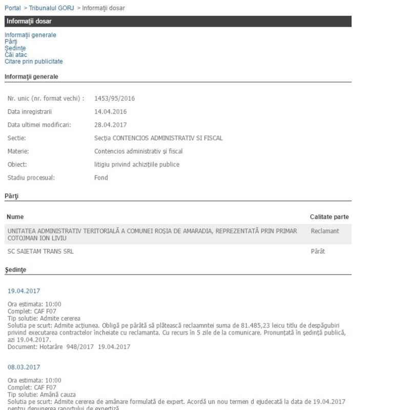 Contactat telefonic, primarul comunei Roșia de Amaradia, Liviu Cotojman, a luat apărarea firmei de construcții, dând chiar vina pe cei care reclamă public starea investiției de la Șitoaia. Asta, deși, instituția publică numai ce a câștigat, pe fond, un litigiu privind achizițiile publice cu firma SAIETAM TRANS. Primăria Roșia de Amaradia a obligat, de altfel, firma de construcții să-i restituie 81.000 de lei, bani oferiți societății pentru nisipul folosit la deszăpezire. Administratorul susține însă că va ataca sentința respectivă dată în luna aprilie, menționând că autoritatea locală a apelat la instanță urmare a unei verificări făcute de Camera de Conturi a județului Gorj.