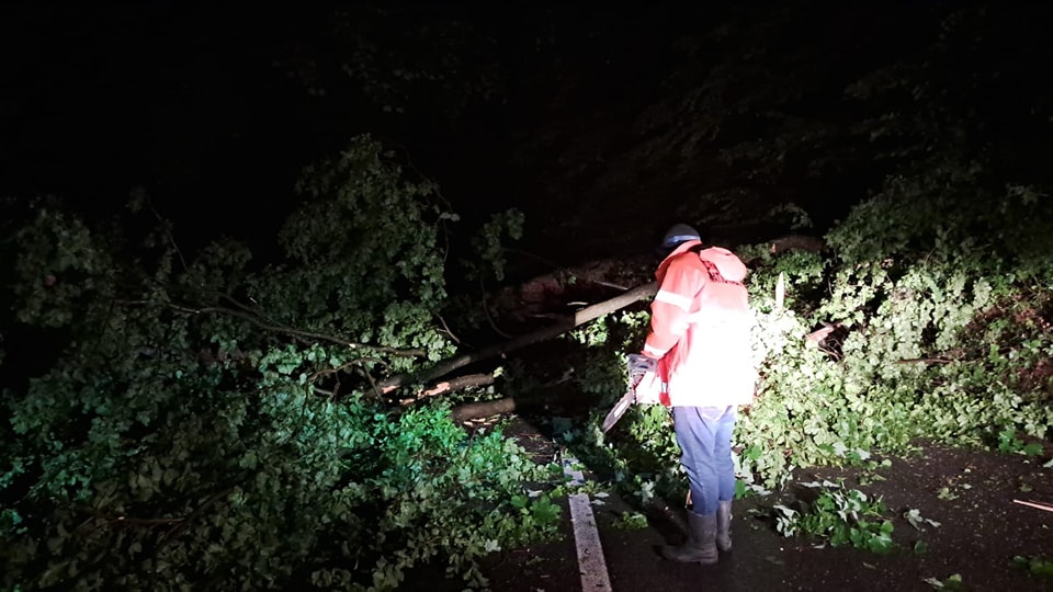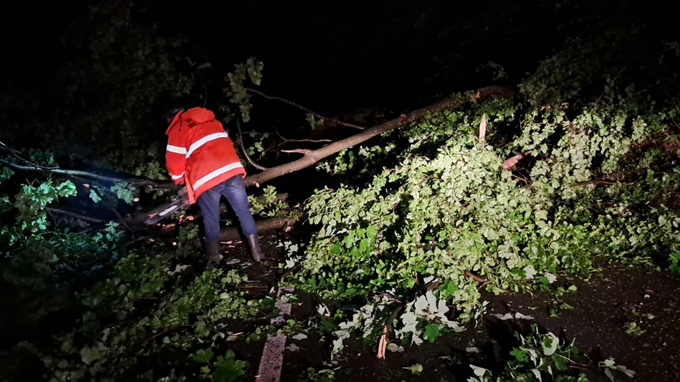 ”Angajații SDN Orșova au patrulat și intervenit, de câte ori a fost nevoie, în ultimele ore pentru îndepărtarea copacilor de pe partea carosabilă, rupți de vântul puternic.