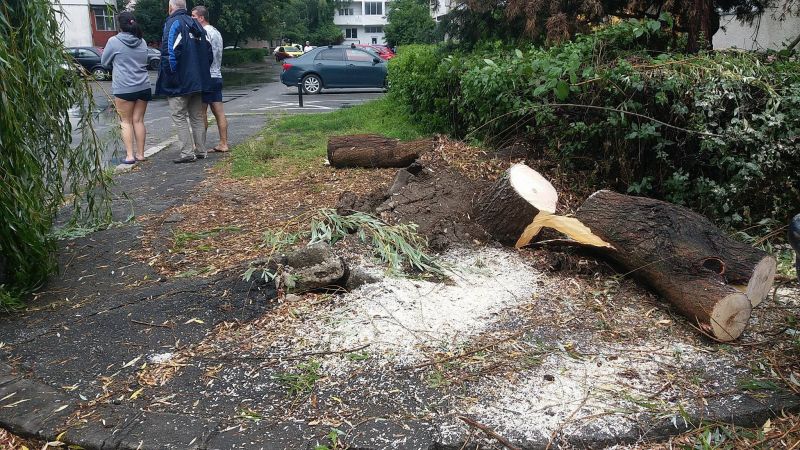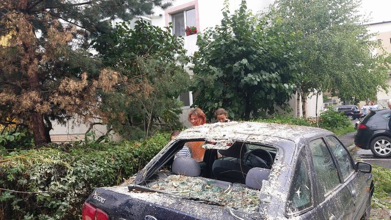 Trei autoturisme au fost avariate de bucățile de tablă sau de crengile copacilor puși la pământ. Din fericire, nu au fost persoane rănite în incidentele respective. Pompierii au intervenit pentru a îndepărta arborii căzuți pe carosabil și pe mașini, acum șoferii fiind buni de plată pentru că nu aveau asigurare CASCO. Cel mai grav a fost avariată o mașină înmatriculată la Mehedinți, un județ grav afectat de lipsa precipitațiilor, incendiile de vegetație uscată fiind acolo la ordinea zilei tocmai pentru că nu a plouat de mult timp.