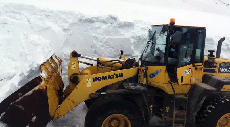 În plină primăvară, drumarii gorjeni se luptă cu nămeții pe Transalpina. De ieri, utilajele au intrat pe Drumul Regelui și au început să îndepărteze zăpada de pe carosabil. Întrucât pe versanți există acumulări de zăpadă, care au ajuns pe carosabil, în anumite zone stratul de omăt de pe Transalpina măsoară chiar și 5 metri. “În anumite locuri autofreza de mare capacitate, ZIL, nu poate înainta din cauza zăpezii prea mari și tasate, se oprește ca într-un zid, și trebuie intrat cu vola să spargă, după care se aruncă zăpada”, a explicat Cristi Tudor, reprezentantul Secției Drumuri Naționale Târgu-Jiu.