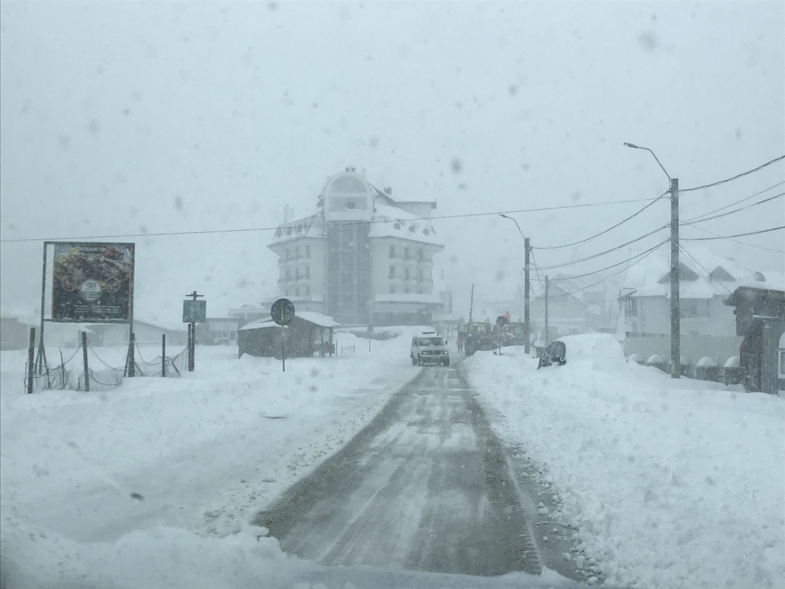 A nins ca în basme în stațiunea care acum este mai pustie ca niciodată nu doar în timpul săptămânii, ci și în weekend. Rânca are de ieri zăpadă de aproape un metru pe pârtiile adorate de schiori și de peste un metru mai spre „coada” stațiunii, acolo unde drumarii au avut de lucru din plin. A nins încă de duminică seara, iar ieri la prânz stratul de omăt trecea de o jumătate de metru, singurul cabanier care încă nu s-a „predat” și a rămas în vârful muntelui, Constantin Pănescu, mărturisind că se săturase să tot îndepărteze zăpada de pe terasa pensiunii sale. „De două ori am curățat de azi dimineață și tot îmi ajunge la genunchi aici. Mașina e îngropată sub zăpadă, că dacă are o jumătate de metru acum la prânz, peste câteva ore va fi și mai mare. Se face de un metru până miercuri când spun meteorologii că se va opri acest val de ninsori. Vorbesc de pârtie, un loc în care acum este foarte frumos. Păcat că nu are cine să se bucure de zăpadă. Noi suntem obișnuiți cu ea, o să avem și de Paști, dar plângem pentru că nu avem turiști și copii care să se bucure de ceea ce avem aici. Școlile sunt închise acum, dar situația e de așa natură că nu poate nimeni să vină să se dea măcar cu o săniuță”, a spus, cu regret, Constantin Pănescu.