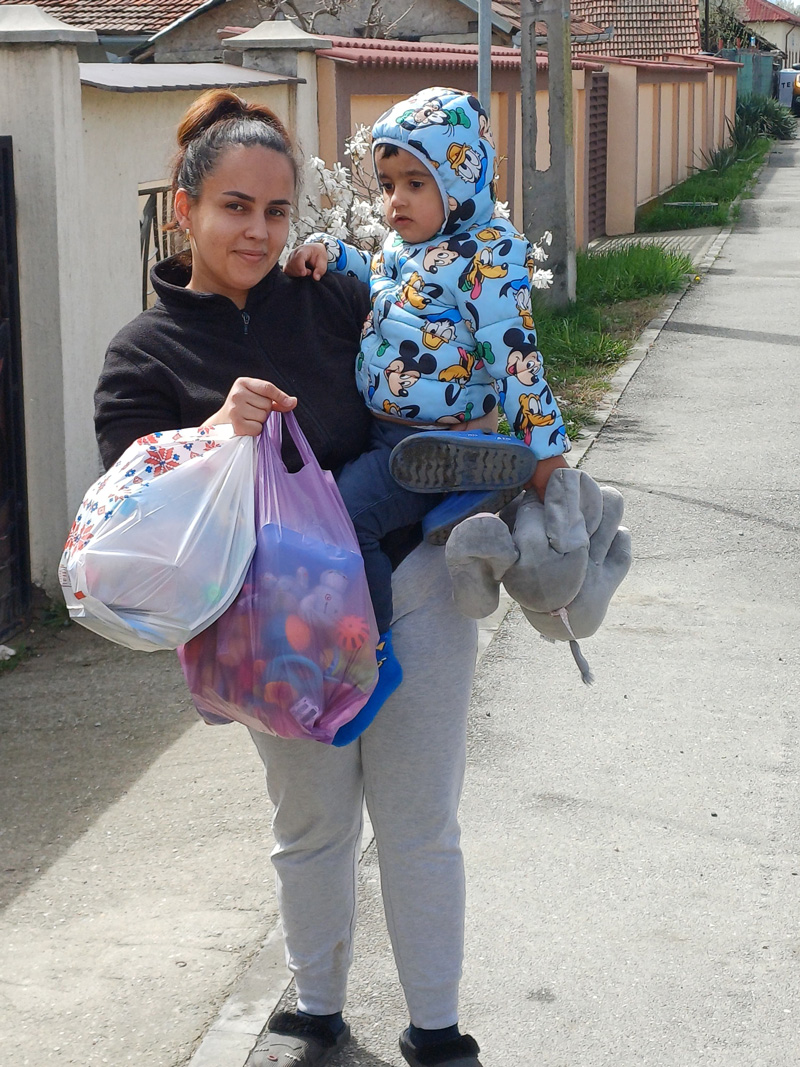 Pe lângă jucării, cozonacii oferiți au adus un strop din spiritul sărbătorilor în casele acestor familii. În multe dintre ele, masa de Paște este una modestă, iar astfel de gesturi simple reușesc să aducă o fărâmă de normalitate și căldură.