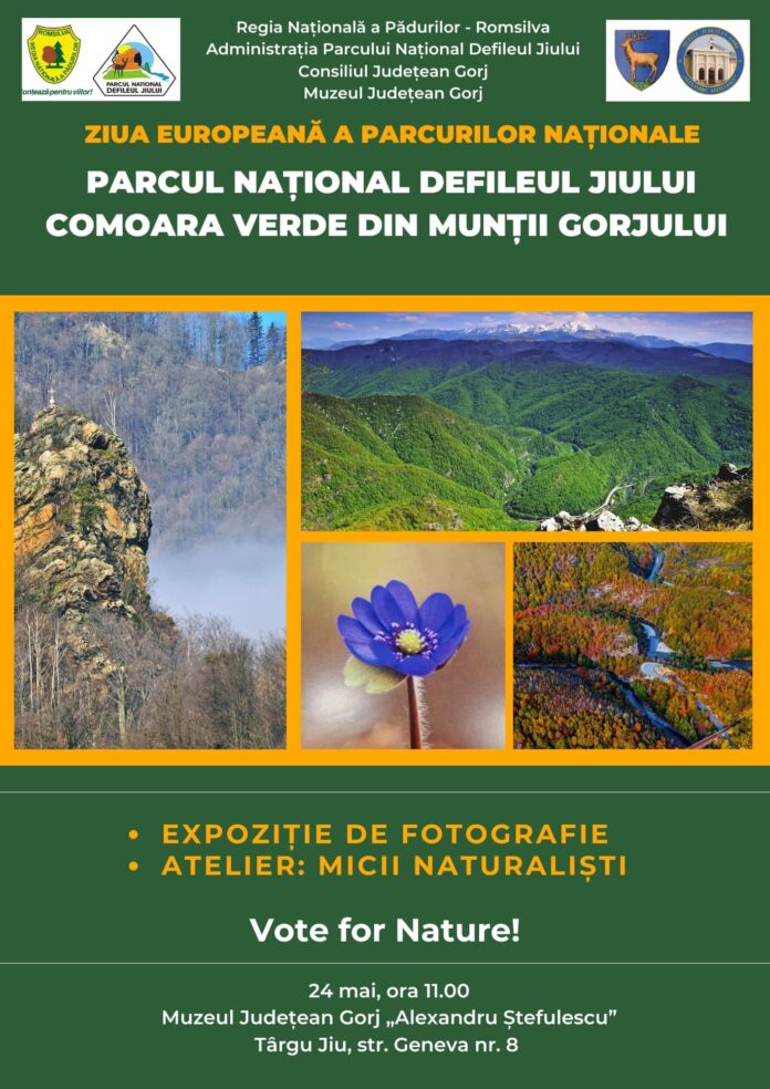 ”Pe 24 mai 2024, te invităm la Muzeul Județean Gorj „Alexandru Ștefulescu” din Târgu Jiu, pentru a sărbători Ziua Europeană a Parcurilor Naționale într-un mod creativ și educativ. Sub sloganul „Vote for Nature!”, vom găzdui un atelier de creație pentru copii, unde participanții vor avea ocazia să creeze pandative pe lemn, inspirate din frumusețea naturii. Evenimentul va include, de asemenea, o expoziție foto captivantă, care va prezenta patrimoniul natural și cultural din Parcul Național Defileul Jiului. Aceasta este o oportunitate perfectă pentru a explora și aprecia diversitatea naturală prin artă și fotografie. Vino să te inspiri și să îți exprimi susținerea pentru natură!”, a anunțat conducerea Muzeului Județean Gorj.