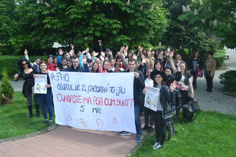 Asociația Persoanelor cu Handicap din Oltenia prin Centrul de Zi “Christian” pentru persoanele cu dizabilități din Târgu-Jiu, a organizat, pe data de 5 mai 2017, în interiorul Centrului “Christian”, Ziua Europeană de Luptă Împotriva Discriminării Persoanelor cu Dizabilități. Întrucât s-a pregătit și o activitate în Parcul Coloanei Infinitului, din cauza condițiilor meteorologice nefavorabile desfășurării ei, aceasta va fi reprogramată spre sfârșitul săptămânii viitoare.