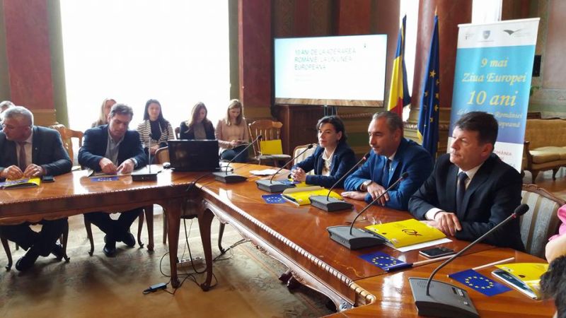 Tot ieri, aurotitățile s-au reunit la aceeași masă, participând la Seminarul, “9 mai-Ziua Europei”, dedicat împlinirii a 10 ani de la aderarea României la Uniunea Europeană. Evenimentul s-a desfăşurat la Sala Maură a Palatului Administrativ. Organizatori: Centrul Europe Direct Gorj şi Consiliul Judeţean Gorj. Au participat vicepreşedintele CJG, Nicolae Muja, prefectul Județului Gorj, Ciprian Florescu, viceprimarul municipiului Târgu-Jiu, Adrian Tudor, împreună cu alţi reprezentanţi ai instituţiilor publice subordonate CJG şi deconcentrate din judeţ.