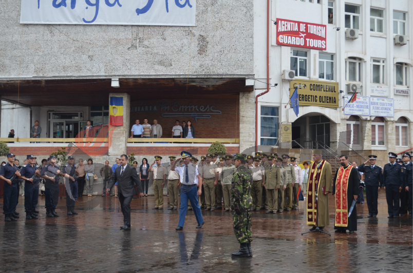 Din cauza ploii abundente autorităţile au precipitat derularea manifestării, dedicate Zilei Imnului Naţional al României. Cel care a deschis manifestarea a fost chiar prefectul Alin Văcaru, care a vorbit despre mândria de a fi român. “În fiecare an, la data de 29 iulie celebrăm Ziua Imnului Naţional al României, moment care ne oferă prilejul să ne arătăm profundul respect faţă de identitatea şi cultura noastră naţională. Anul acesta aniversăm 166 de ani de la prima intonare a Imnului Naţional Deşteaptă-te române”, a susţinut prefectul judeţului. Câteva cuvinte despre importanţa evenimentului a rostit şi edilul municipiului, Florin Cârciumaru: “Imnul României, alături de stemă, reprezintă un însemn naţional important al neamului nostru. El are o valoare inestimabilă şi cumulează toate valorile supreme ale ţării noastre. Atribuit şi simbol al patriei, imnul a fost intonat permanent de fiecare generaţie identificându-şi trecutul, prezentul şi viitorul”, a precizat primarul oraşului Florin Cârciumaru.